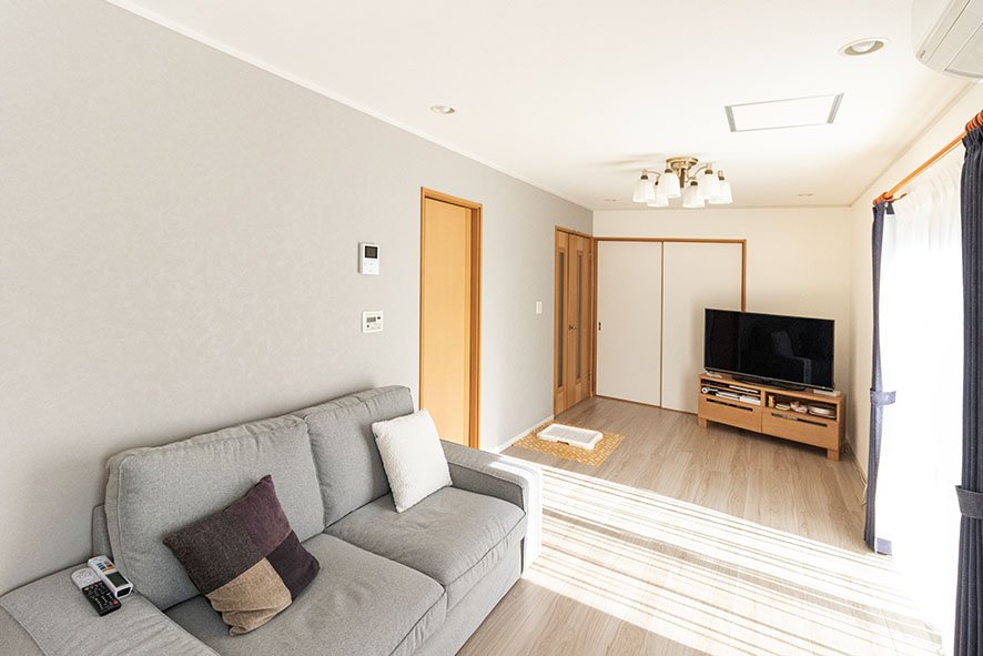 E様邸のリビングは日当たりが良く、明るい光が差し込んでいますが、「リフォームをして気分まで明るくなりました」と喜ばれていました。