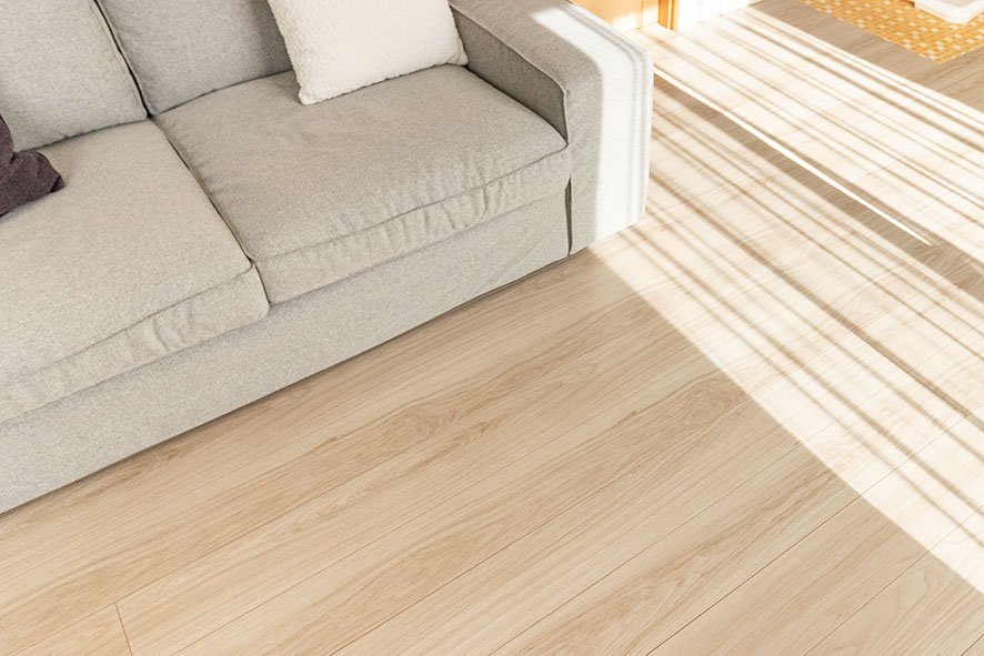 フローリング表面のめくれを修繕することをきっかけに、E様はご入居25年目にリビングのフローリングとキッチンの交換リフォームを実施されました。当初は「キッチンはまだ使える」とお考えでしたが、リビングとキッチンが同じ素材のフローリングで境目がないことから、まとめて総張替えした方が仕上がりも良いことを当社の営業担当よりアドバイスさせていただきました。さらに、60代となったご夫婦の年齢を踏まえ、将来改めてリフォームを行うより今回まとめて行った方が効率的で、かつ身体へのご負担も少ないとE様ご自身で考えられ、キッチンの交換も併せて実施されました。