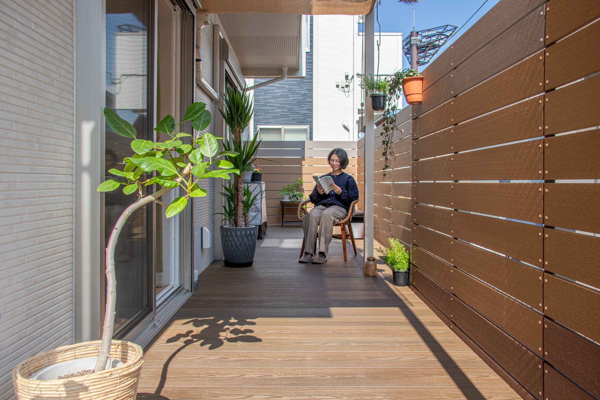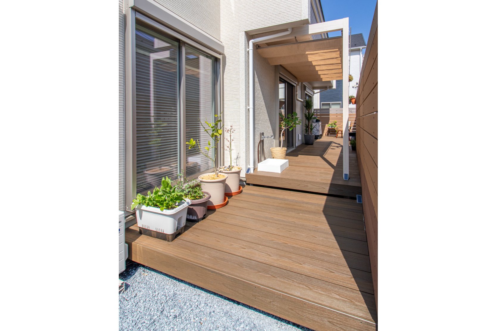 その想いを形にしたのが、リビングとお庭をフラットにつなぐウッドデッキです。手軽に外へ出られるようになったことで使い勝手が大きく向上し、今では植物のお手入れやリラックスタイムに欠かせない「アウトドアリビング」として活用されています。