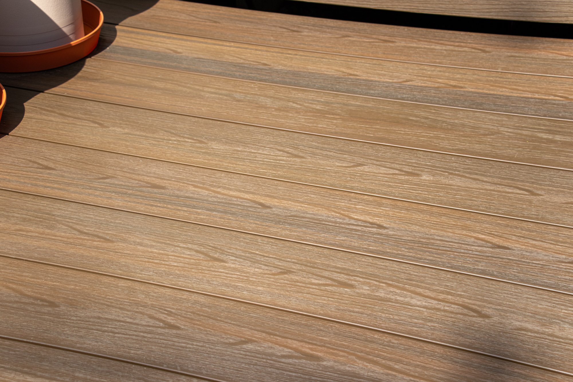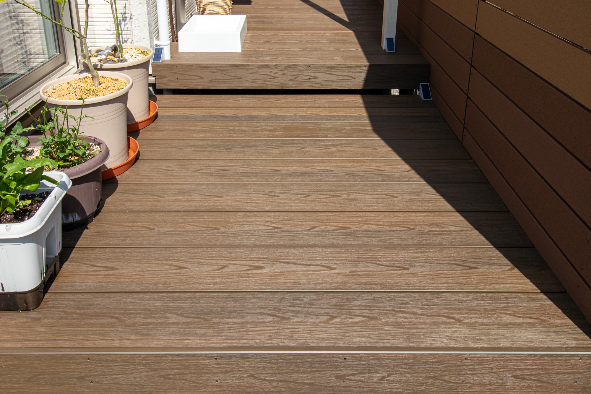 また、「お庭のリフォームは一生に何度もするものではないので、良いものを選びたい」という想いから、天然木のような豊かな表情を持つタカショーの「エバーエコウッド リアル」を採用されました。本物の木に近い質感がお庭に上質な印象をもたらすだけでなく、雨染みや汚れに強いのも特長です。「汚れをサッとひと拭きで落とせるので、メンテナンスがとても楽なのも嬉しいです」と奥様。見た目の美しさだけでなく、日々のお手入れのしやすさにも満足されているようでした。