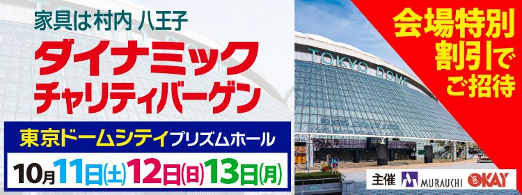 家具は村内「家具インテリア・ダイナミックチャリティバーゲン in 東京ドームシティ」2025.10.11(土)~13(月・祝) 開催!