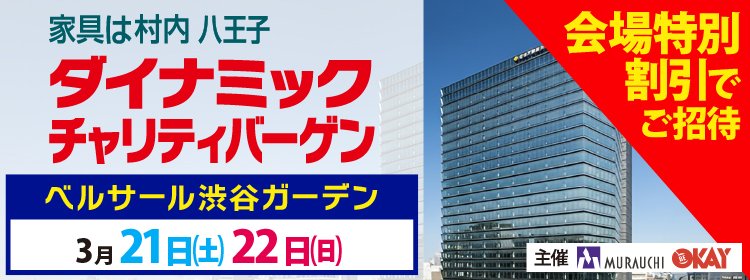 家具は村内「家具インテリア・ダイナミックチャリティバーゲン in ベルサール渋谷ガーデン」2026.3.21(土)・22(日) 開催!