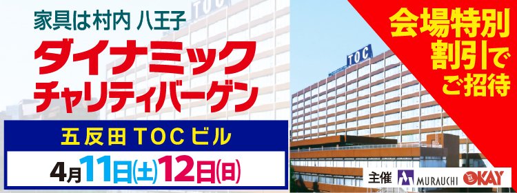 家具は村内「家具インテリア・ダイナミックチャリティバーゲン in 五反田TOCビル」2026.4.11(土)・12(日) 開催!