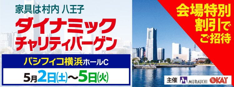 家具は村内「家具インテリア・ダイナミックチャリティバーゲン in パシフィコ横浜」2026.5.2(土)~5(火・祝) 開催!